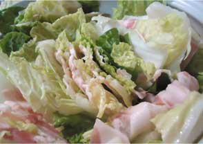 白菜と豚肉を交互に重ねて鍋に入れます。