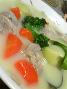 ずっとシチューの話を続けてましたが、写真の肉はどう見ても鶏肉ですね・・・。