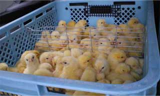 入雛とは、孵化したヒヨコを養鶏場に移動させる作業のことです。